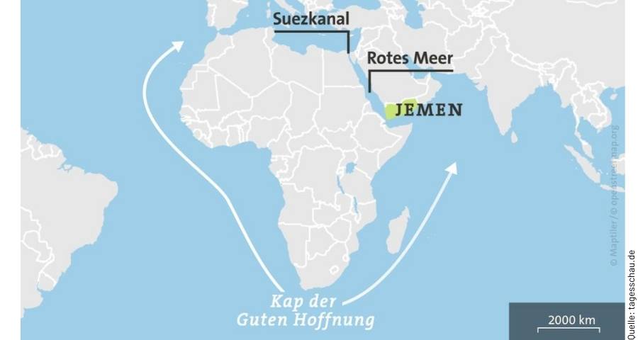 Viele Reedereien meiden die Route und nehmen stattdessen den deutlich längeren Weg um das Kap der Guten Hoffnung. Das kostet nicht nur Zeit, sondern auch Geld.